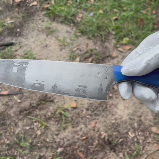 Artisan Handle: Stunning Honduran rosewood burl and epoxy resin handle for a secure, comfortable, and visually striking grip.